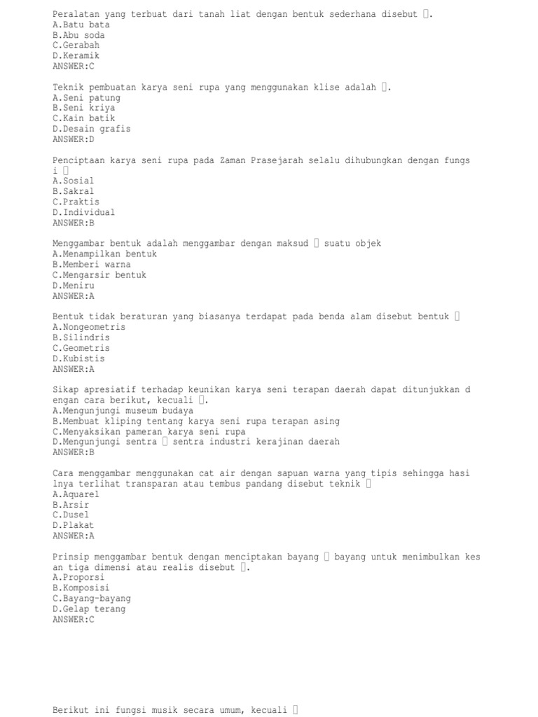 Soal Seni Budaya Kls 9 Sem 2 Tp 20 21 Pdf from imgv2-1-f.scribdassets.com Anda akan menerima jawaban atas email tersebut. Didalam seni budaya itu di sebut pola lantai. Garis yang dilalui penari pada saat melakukan gerak tari disebut. Tari topeng adalah adalah tarian yang penarinya mengenakan properti topeng. Garis pantai banyak dikenal sebagai garis yang menjadi batas antara darat dan laut. Assalamu'alaikum tolong ya dijawab soalnya. Pengertian dan gerak dasar seni. B komposisi dalam satu ruang pertunjukan dapat dilakukan dengan membentuk a.pola lantai b.gerak c.wiraga d.garis lantai answer:d.