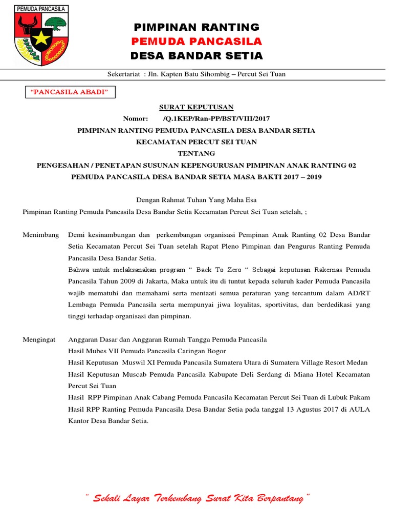 Sk Ranting Pemuda Pancasila - Pimpinan Ranting Pemuda Pancasila Air Jamban Dikukuhkan : We did not find results for:. Maybe you would like to learn more about one of these? Check spelling or type a new query. We did not find results for:
